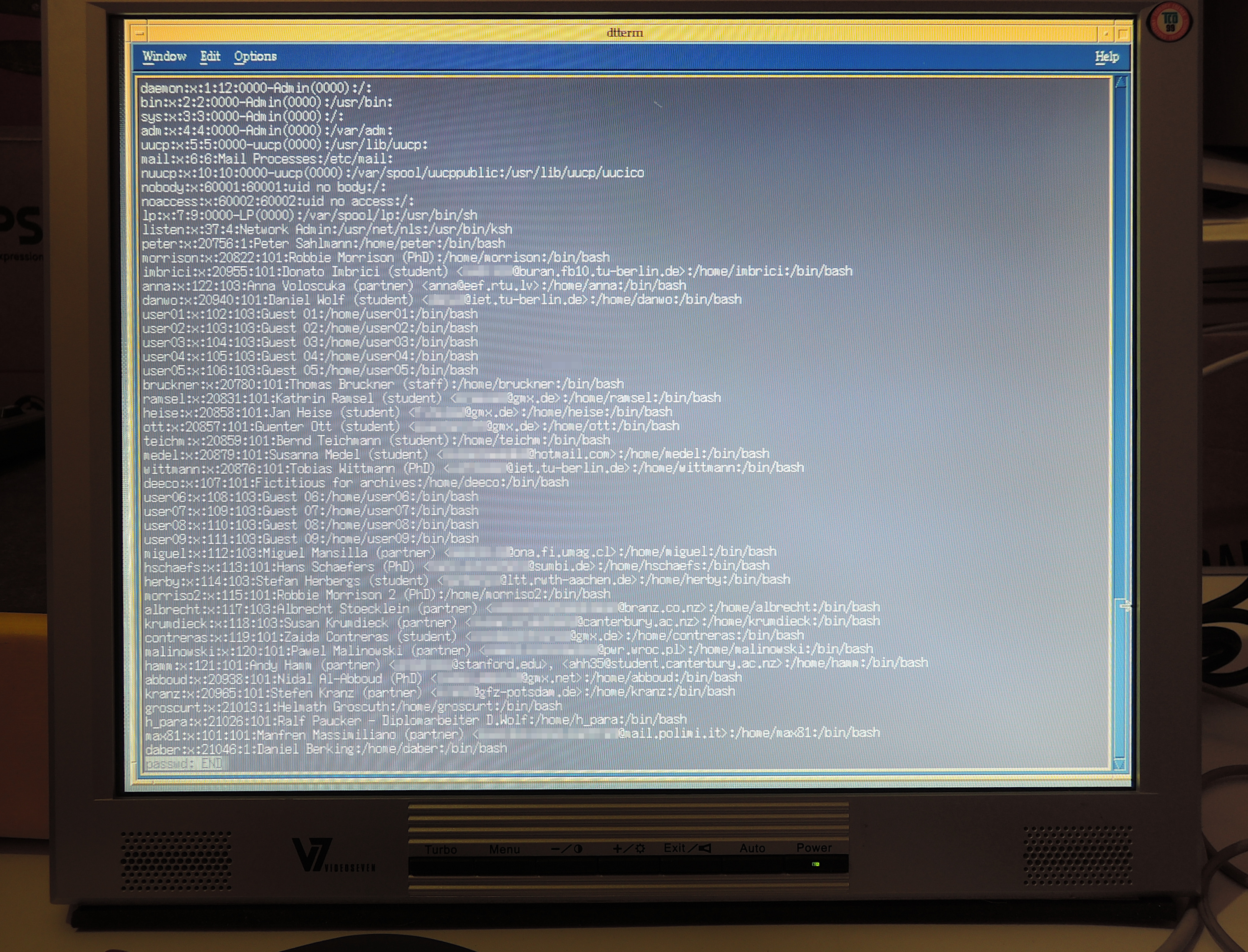 Fig 4: UNIX terminal displaying 25 user accounts on helgoland