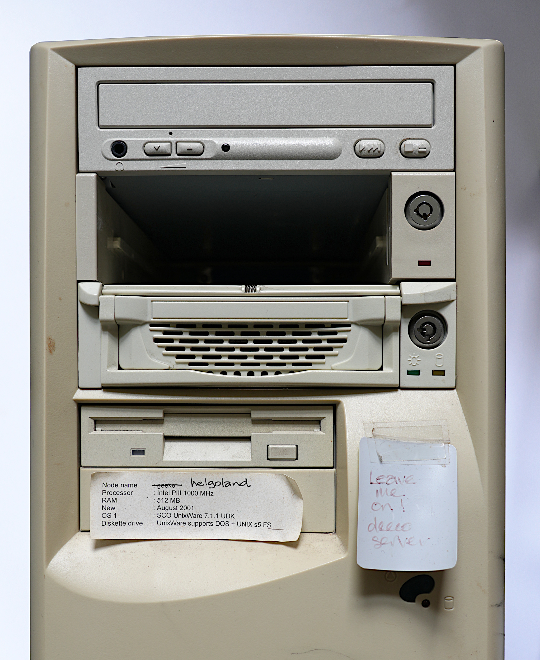 Fig 1: The helgoland server was assembled to specification on 27 July 2001